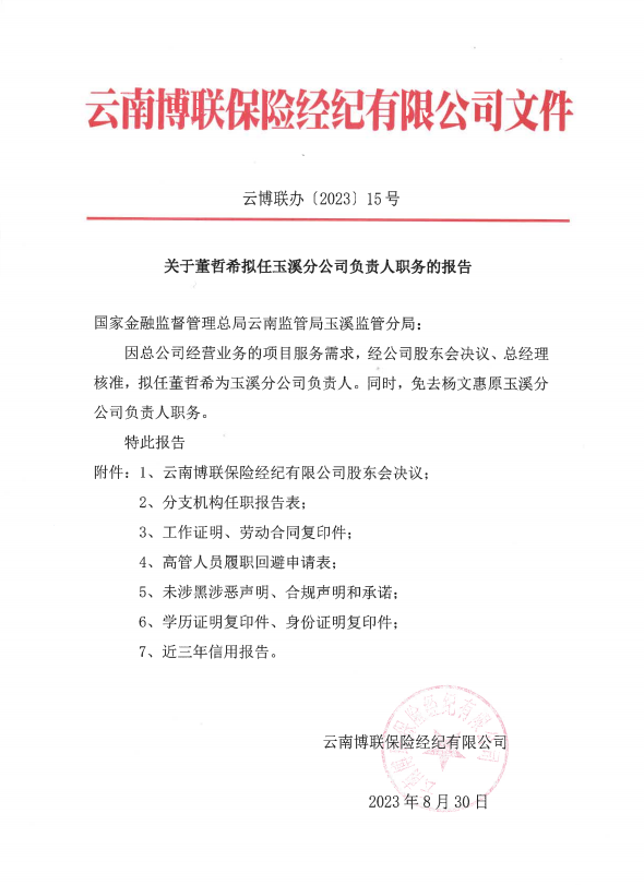云南博聯(lián)保險經(jīng)紀有限公司關于文